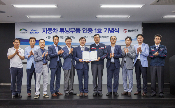 한국자동차튜닝협회(회장 장형성)가 지난 23일 핸즈코퍼레이션 본사에서 ‘자동차 튜닝부품 인증 1호 기념식’을 개최했다고 밝혔다.