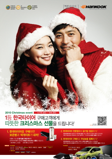 한국타이어가 다가오는 크리스마스를 맞아 티스테이션, 타이어타운, TBX, 판매대리점 등에서 한국타이어 상품을 구매하는 고객을 대상으로 '2010 크리스마스 구매고객 이벤트'를 실시한다고 18일 밝혔다.