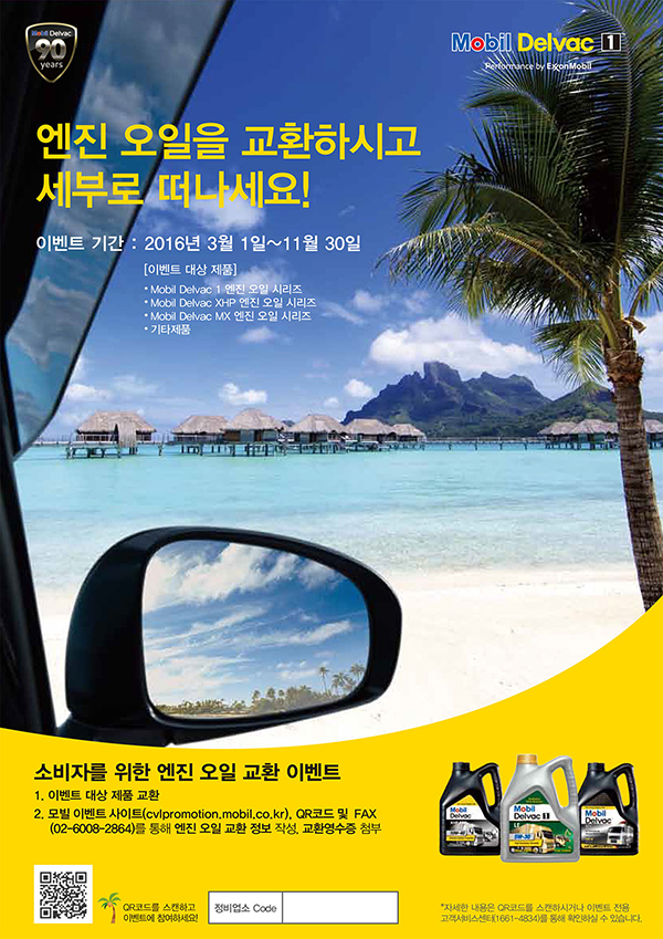 한편, 이번 이벤트는 소비자 대상 외에 정비업소를 대상으로 하는 프로모션도 진행한다. 모빌코리아윤활유㈜의 공식 대리점 또는 지정된 공식 판매점을 통해 제품을 구매하고 정비업소 대상 프모로션에 등록하면 참여가 가능하다.