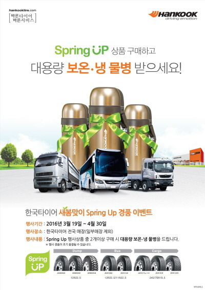 이 기간 중 TBR 제품을 2본 이상 구매하면 대형 보온·보랭 물병을 증정한다. 행사 대상 제품은 덤프트럭용 AM06, DM06, DM04(규격: 12R22.5) 및 버스용 AH36, DH16(12R22.5/11R22.5) 등이다. 카고용 타이어 AH11w, AH33, DH33(245/70R19.5)도 포함한다.