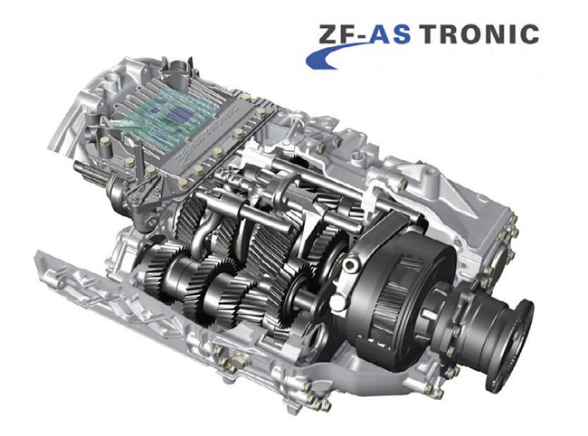 ZF에서 최초로 개발.적용한 상용차용 아스트로닉 AMT는 ZF의 대표적인 변속기라고 할 수 있다. 일반적으로 대형 차량용으로 적용되는 3페달(클러치, 브레이크, 가속페달) 수동변속기와 다르게 승용차에서 광범위 하게 적용되고 있는 2페달(브레이크, 가속페달)만 적용되어 있다. 또한 승용차처럼 엔진의 동력을 단속하는 토크 컨버터와 같은 역할을 하는 클러치 시스템을 전자동으로 컨트롤하는 전용 전자제어(TCU control) 장치가 있어 안락하고 경제적인 변속을 실시토록 하고 있다.