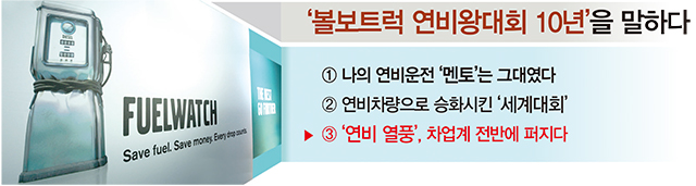 이렇듯 상용차량을 중심으로 승용차, 중고차, 그리고 부품·용품에까지 연비 인식은 자동차업계 전반에 광범위하게 퍼져 있는 것이다. 연비관련 행사 및 대회는 주로 자사의 고객들을 위한 마케팅 프로그램의 일환으로 진행되고는 있지만, ‘연비’는 이제 어느 특정인 소유물이 아닌 전체 공유물이 돼 버린 것이다. 볼보트럭 연비왕 대회가 직간접적으로 가져다 준 큰 선물임을 누구도 부인하기 어려울 것이다.