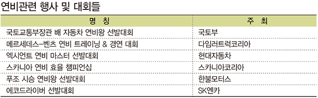이 중 현대차와 다임러트럭코리아, 스카니아코리아는 볼보트럭 연비왕 대회를 벤치마킹하여, 자사의 특징을 보완한 좀 더 색다른 형태의 연비대회를 열고 있다.