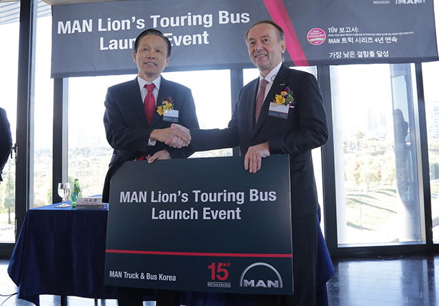 이 날 행사에는 막스 버거(Max Burger) 만트럭버스코리아 사장이 참석해 첫 구매고객인 서울시티투어버스 길기연 고문에게 국내 1호 MAN 라이온스 투어링을 전달했다.