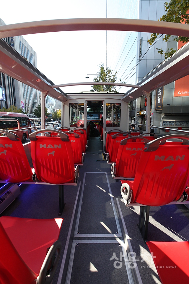 이번에 국내에 처음 소개되는 MAN 라이온스 투어링은 국내 유일 천정 및 창문 개방형 단층 시내관광버스다. 천정 개폐 및 후면 창문 탈〮부착이 가능해 봄, 여름, 가을에는 개방형으로, 겨울에는 폐쇄형으로 전환 가능해 4계절 모두 운행이 용이하다.