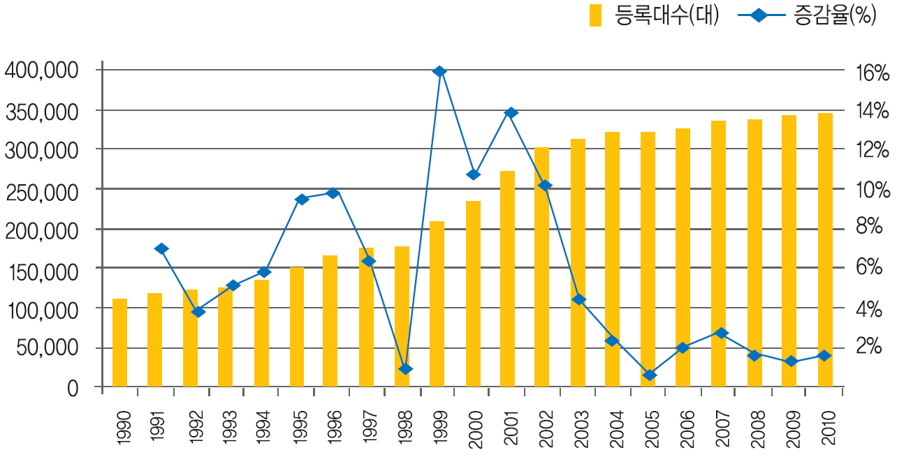 1999년 당시 21만6,000대 수준이던 국내 영업용화물차의 숫자는 일정한 요건만 갖추면 화물차운수사업을 할 수 있는 등록제를 도입함으로써 2003년에는 31만4,000대로 급증했다. 행정절차의 간편화를 위한다는 명목으로 도입된 제도였으나 영업용화물차의 무분별한 증가로 많은 부작용을 낳았다.
