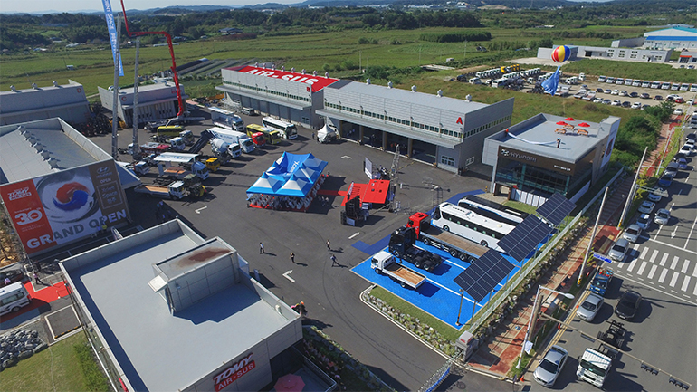실내에 마련된 전시관에서는 유로6 머플러 시스템과 중형 트럭에 적용되는 하이브리드 변속기를 전시하고, 야외 전시장에서는 친환경 전기버스 ‘일렉시티’와 태양열을 이용한 전기충전소를 운영할 계획이다. 최신 IT 기술을 접목한 자율주행 드라이빙 시뮬레이터와 전북현대축구단 팬을 위한 홍보관도 운영한다.