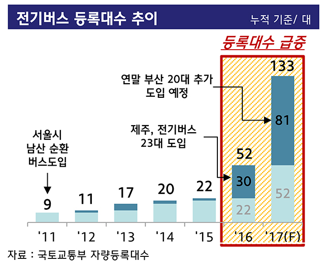 연말 부산에 전기버스 20대가 추가로 도입될 예정임을 감안하면 올해 말 등록대수는 130대 수준으로 예상된다.