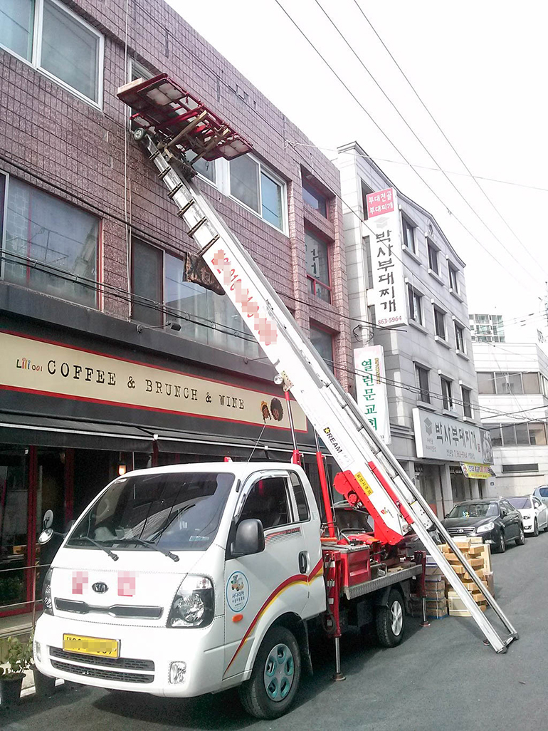 물론 주택이 밀집해 사다리를 뻗을 여유 공간이 충분치 않거나 장애물 등으로 주변 상황이 여의치 않을 때는 이삿짐 운반에 스카이차를 활용하는 경우도 더러 있다.