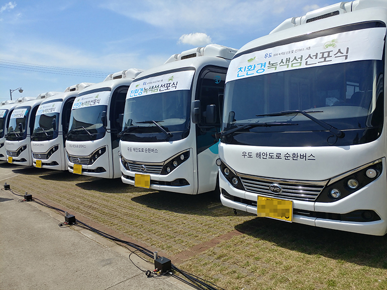 노선에 투입된 전기버스는 지난 1월 공급된 7m급 BYD eBus-7 모델로 우도 해안도로를 순환하는 마을버스 노선에 투입된다. 승차정원은 15명이다.