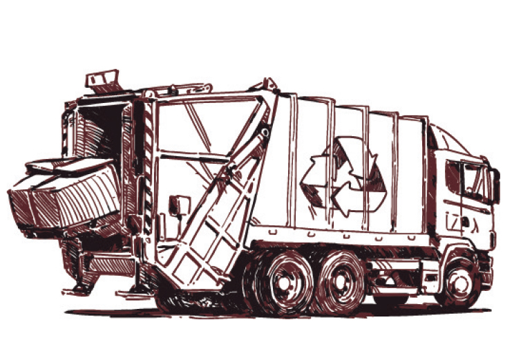 주로 야간에 주거지 근처 도로에는 환경미화원과 함께 일명 쓰레기 수거차로 불리는 차량들이 각 가정에서 배출된 봉투에 담긴 생활 쓰레기들을 수거해간다. 이들 차량들은 쓰레기를 효과적으로 운송하기 위해 유압 프레스 기술을 활용하여 내용물의 부피 및 밀도를 줄이는 압축 및 압착 기술이 적용돼 있다.