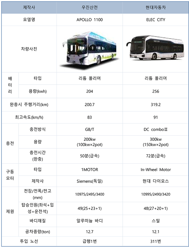 오는 8일부터 우진산전·현대차 전기 버스 각 1대씩 운행