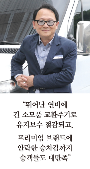 상용차는 시장서 가성비 차량과 고급차량을 두고 시선이 갈린다. 시장경제원리 측면에서 동급대비 비싼 차량은 사치라고 보는 시각도 있는 반면, 승객을 위한 투자라고 생각하기도 한다. 경북 구미서 고급셔틀버스의 대명사 스프린터를 100% 활용한 구미공항리무진(주) 소속의 한제형 씨를 만나봤다.